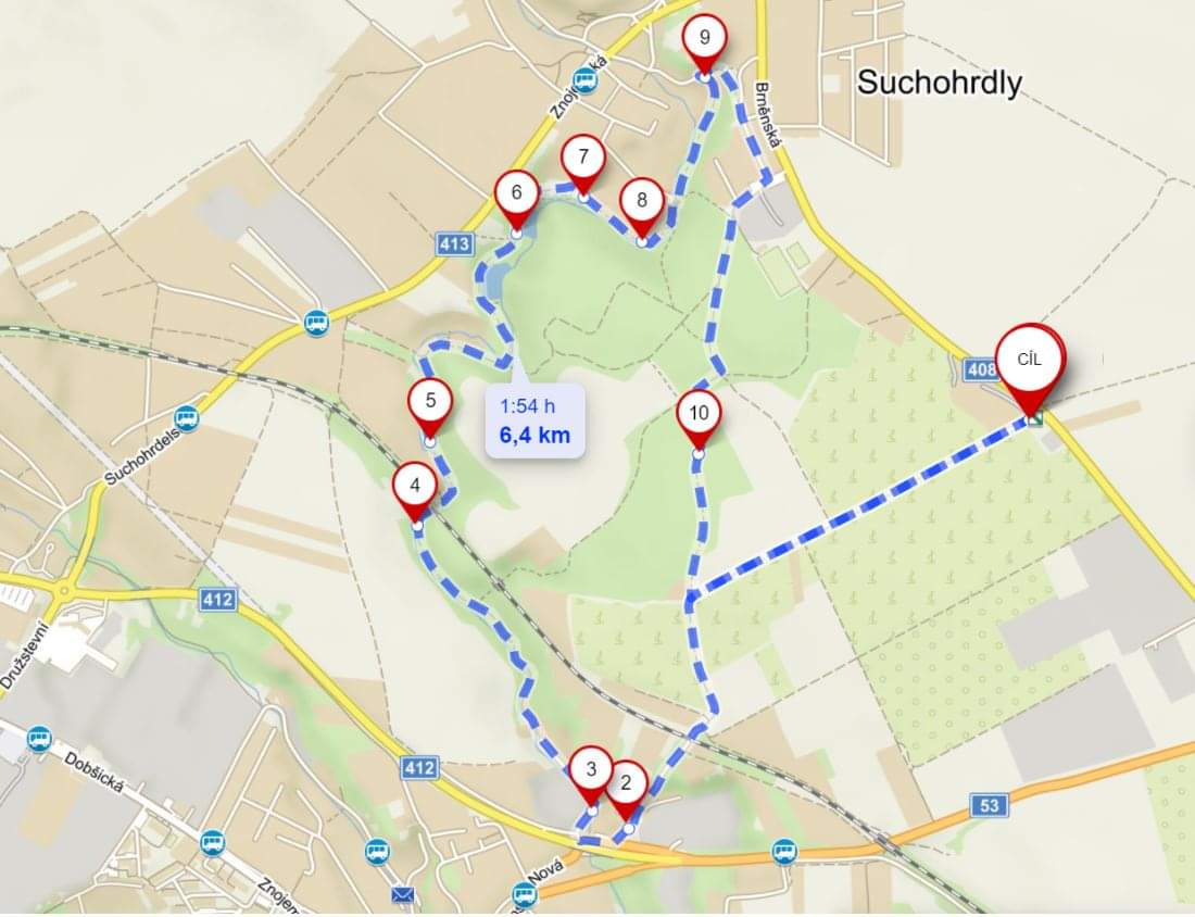 Místo startu: Vinice 579, 671 82 Dobšice